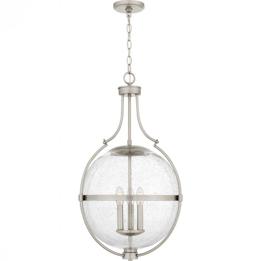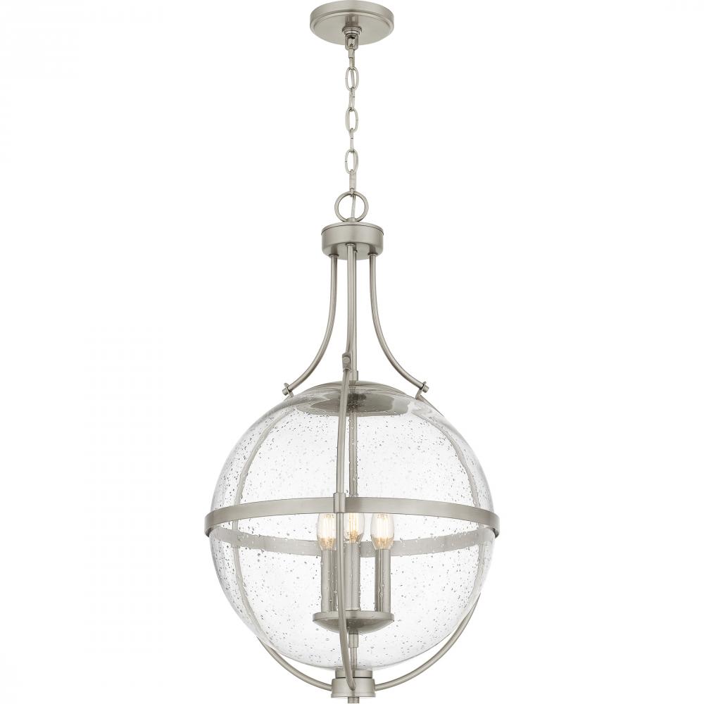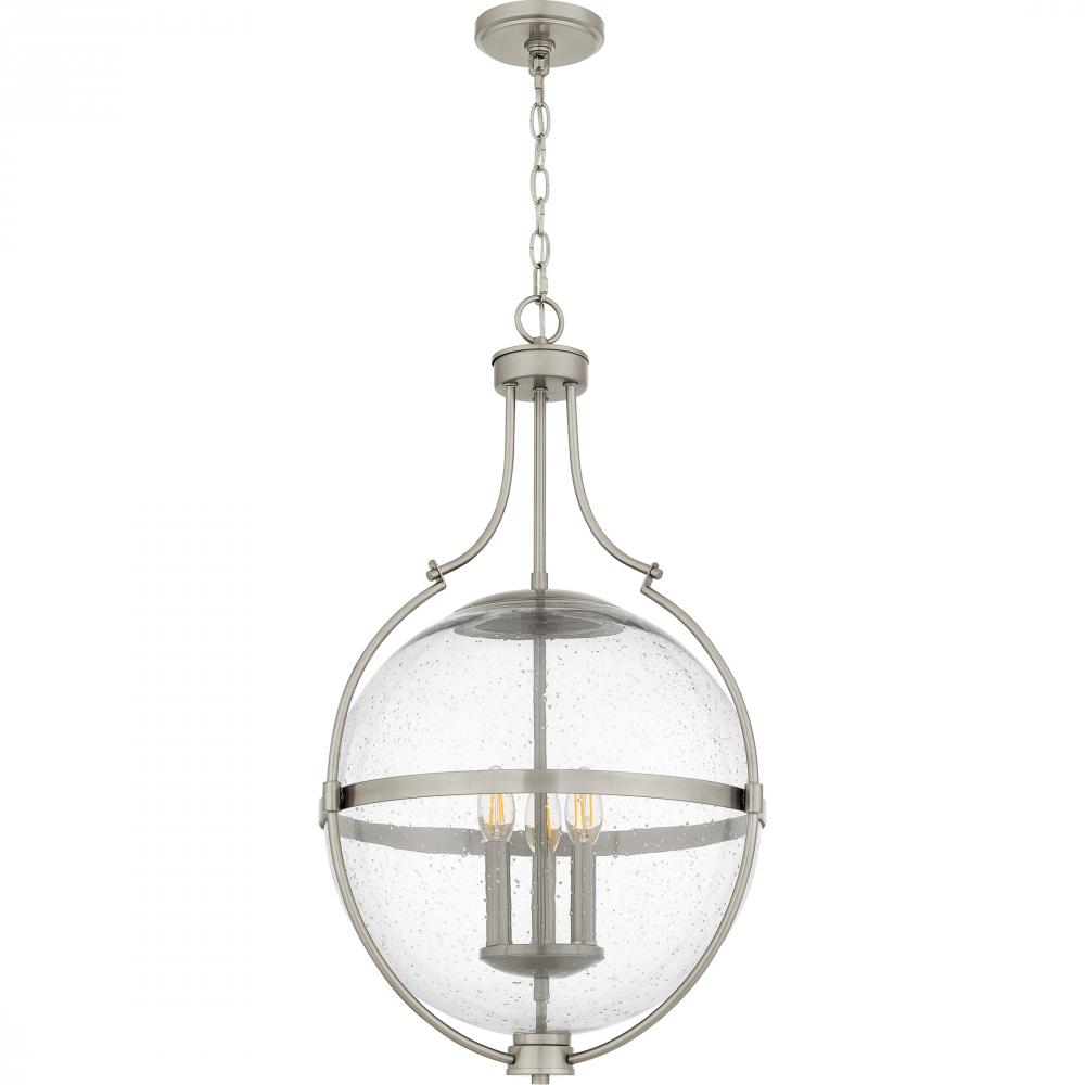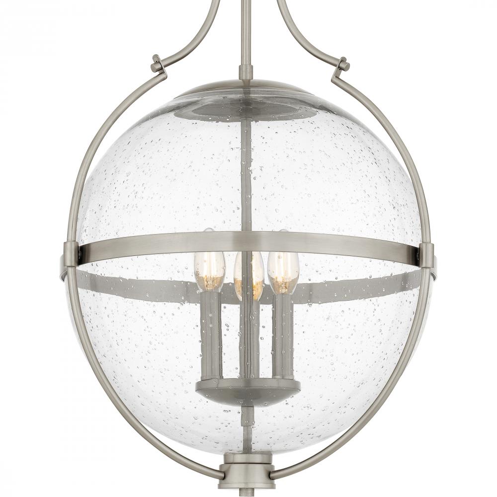Add transitional flair to your home with Chicago pendant lights. The clear seedy glass globe adds sophistication and modern style, pairing beautifully with the exposed bulb sockets and sleek metal lines. Choose from brushed nickel or matte black, two fanta