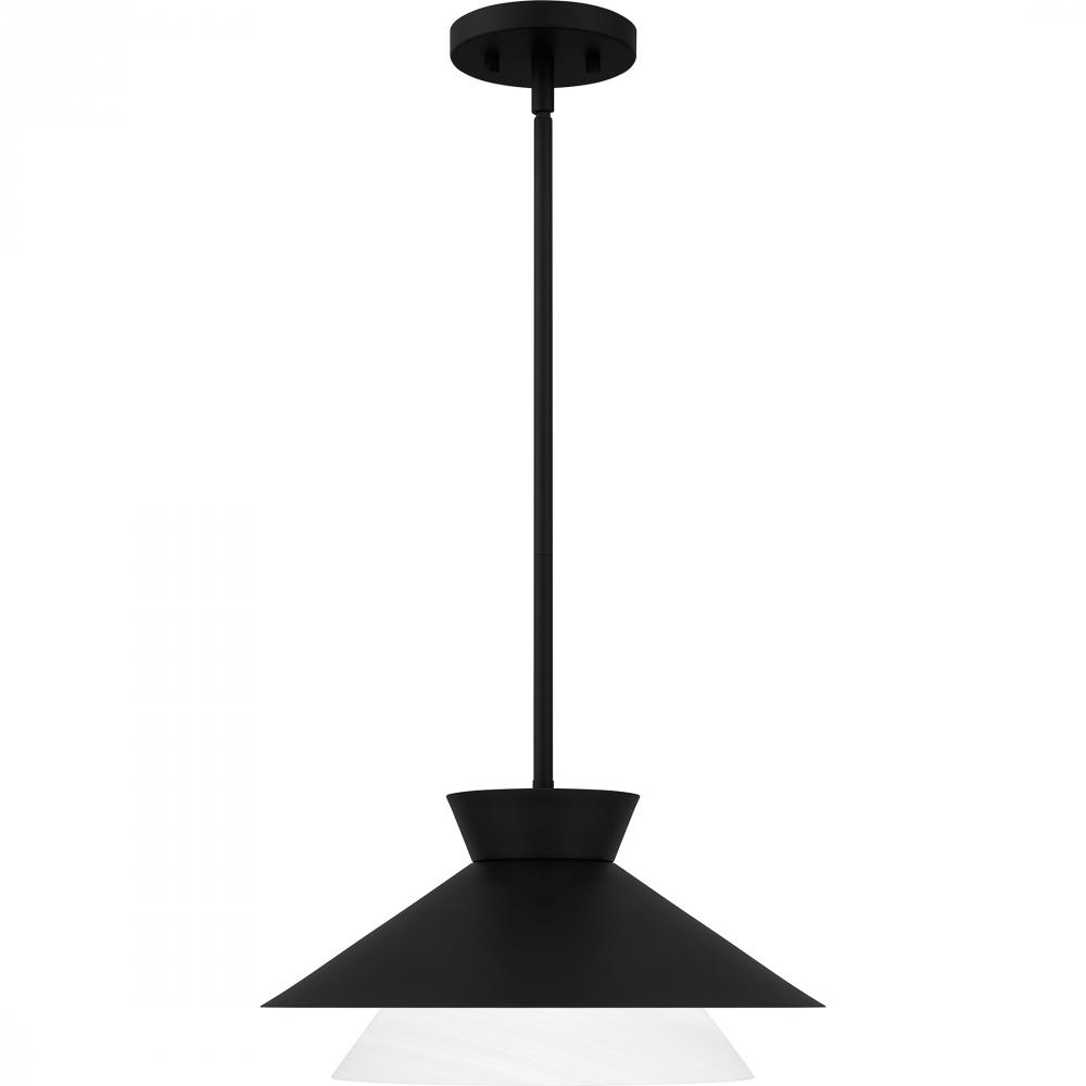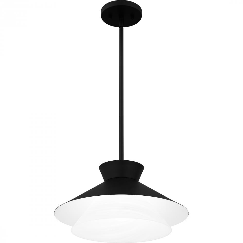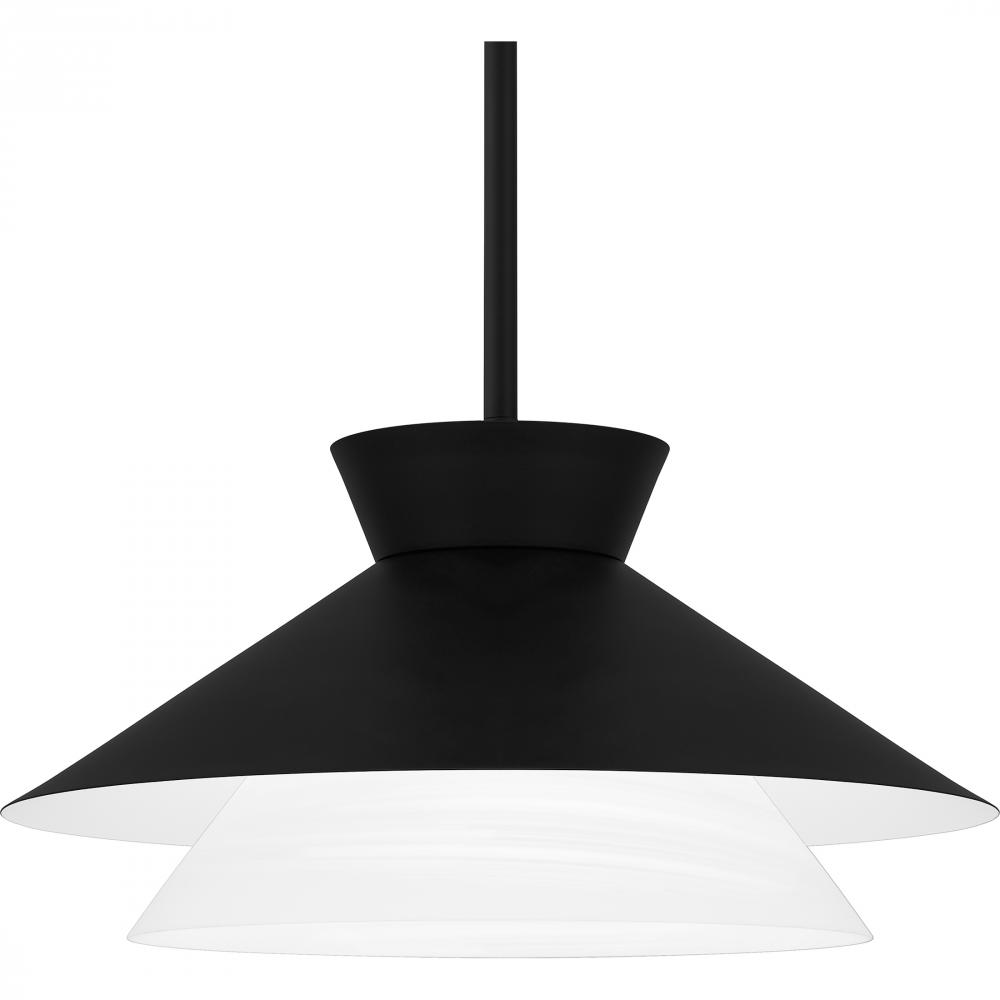 Lionel makes a bold design statement, available as a semi-flush mount or large pendant light. The metal outer shade is finished in a matte black, contrasted beautifully by the inner white alabaster glass shade. With its geometric silhouette and sleek desig