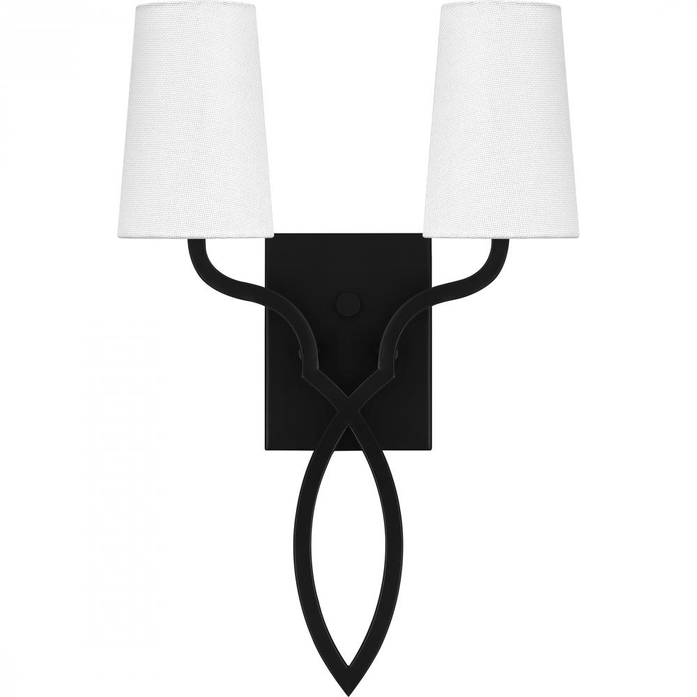 Shapely and eye-catching, the OHare wall sconce features a fascinating silhouette and white linen shades. Paired with simple, curved lines and a matte black finish, this sconce suits a range of interior design styles, including Mediterranean and Farmhouse.