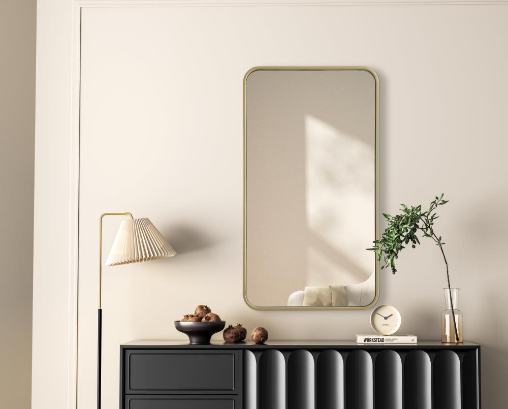 Elevate your home decor with this versatile wall mirror that combines functionality and modern design. Made from a sturdy combination of MDF, iron, and reflective mirror glass, this piece is built to last while adding a polished finish to any room. The extended depth of the frame not only provides a striking dimensional effect but also ensures the mirror’s presence commands attention as a focal point. Whether you're decorating a bedroom, bathroom, or entryway, its diverse shapes—including rectangle and square—offer plenty of options to suit your style. The hand-painted black, brass, or silver finish brings a subtle yet striking touch, complemented by rounded corners for a smooth and contemporary aesthetic. with four metal inset hangers, it's ready to hang vertically or horizontally, ensuring flexibility for any layout. Available in multiple sizes, this mirror is a statement piece that blends seamlessly into both modern and classic spaces.