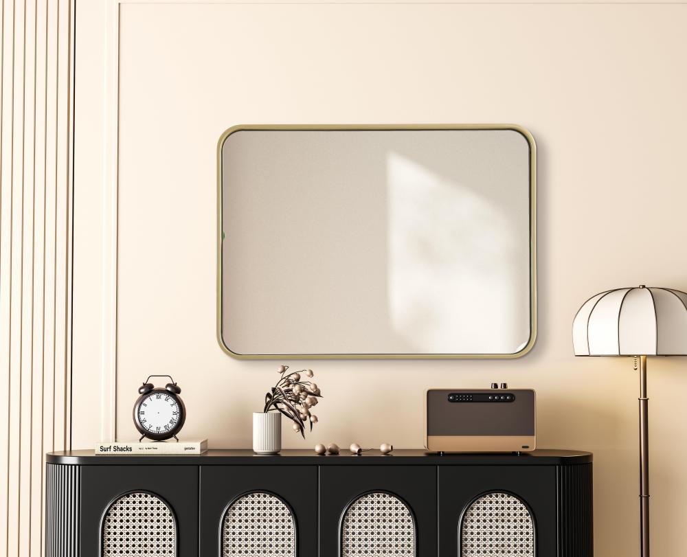 Elevate your home decor with this versatile wall mirror that combines functionality and modern design. Made from a sturdy combination of MDF, iron, and reflective mirror glass, this piece is built to last while adding a polished finish to any room. The extended depth of the frame not only provides a striking dimensional effect but also ensures the mirror’s presence commands attention as a focal point. Whether you're decorating a bedroom, bathroom, or entryway, its diverse shapes—including rectangle and square—offer plenty of options to suit your style. The hand-painted black, brass, or silver finish brings a subtle yet striking touch, complemented by rounded corners for a smooth and contemporary aesthetic. with four metal inset hangers, it's ready to hang vertically or horizontally, ensuring flexibility for any layout. Available in multiple sizes, this mirror is a statement piece that blends seamlessly into both modern and classic spaces.