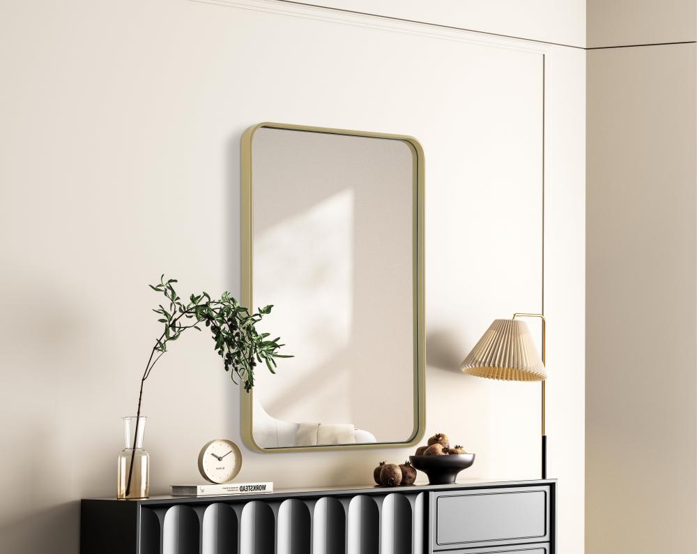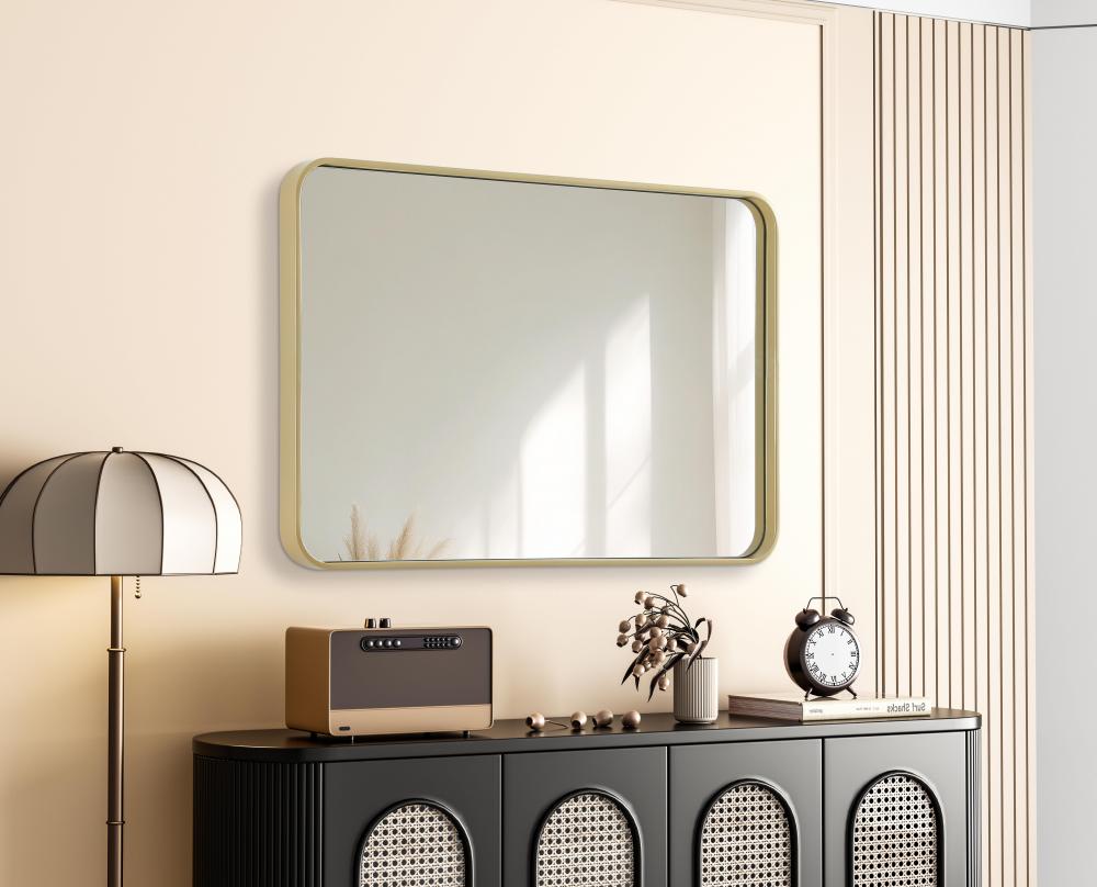 Elevate your home decor with this versatile wall mirror that combines functionality and modern design. Made from a sturdy combination of MDF, iron, and reflective mirror glass, this piece is built to last while adding a polished finish to any room. The extended depth of the frame not only provides a striking dimensional effect but also ensures the mirror’s presence commands attention as a focal point. Whether you're decorating a bedroom, bathroom, or entryway, its diverse shapes—including rectangle and square—offer plenty of options to suit your style. The hand-painted black, brass, or silver finish brings a subtle yet striking touch, complemented by rounded corners for a smooth and contemporary aesthetic. with four metal inset hangers, it's ready to hang vertically or horizontally, ensuring flexibility for any layout. Available in multiple sizes, this mirror is a statement piece that blends seamlessly into both modern and classic spaces.