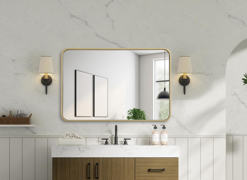 Elegant MR8A2440BRA - R Corner Mirror 24"x40"x2" Brass