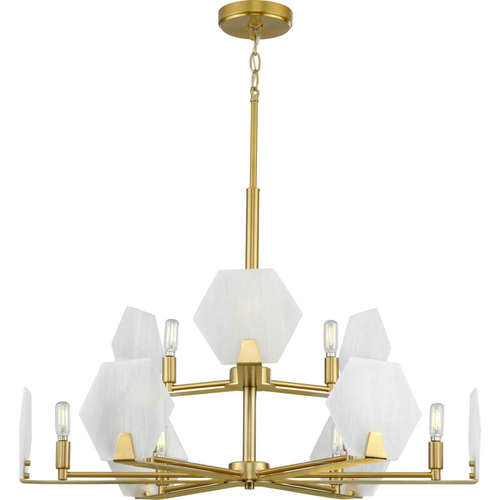 Progress P400217-109 - Rae Collection Nine-Light Brushed Bronze White Alabaster Glass Luxe Chandelier Light