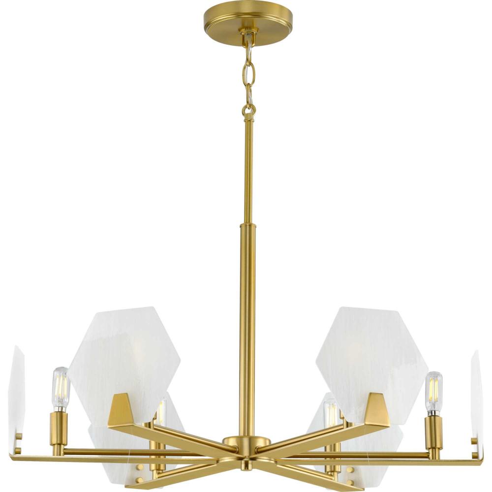 Progress P400216-109 - Rae Collection Six-Light Brushed Bronze White Alabaster Glass Luxe Chandelier Light