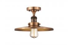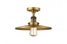 Railroad - 1 Light - 12 inch - Antique Brass - Antique Brass Shade - Semi-Flush Mount