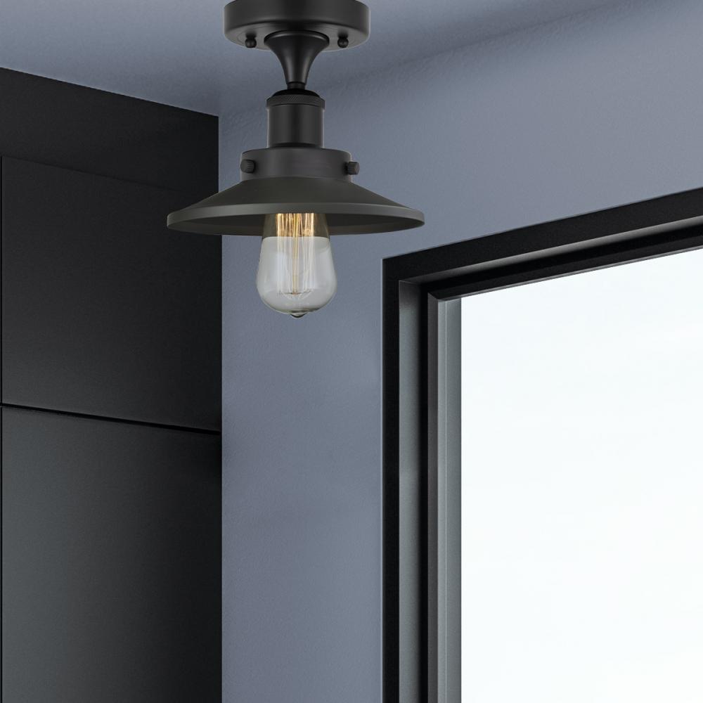 Railroad - 1 Light - 8 inch - Matte Black - Matte Black Shade - Semi-Flush Mount