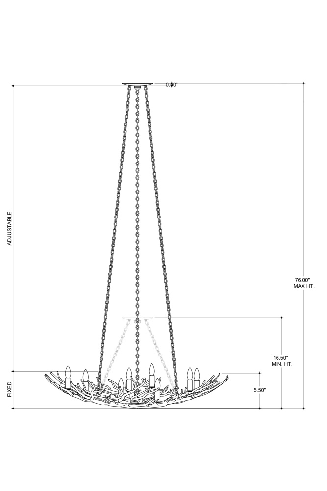 The Rainforest Bronze Small Chandelier has fourteen lights nestled within the hand-forged wrought iron shade of this fixture. The limbs, in a rustic bronze finish, are life-like as they cup the bulbs placed so skillfully on them. Adjustable from 16.5" to 76" with use of included chain/rod kit/cable. If your space calls for a longer drop, additional chain/rods/cable is available for purchase.
