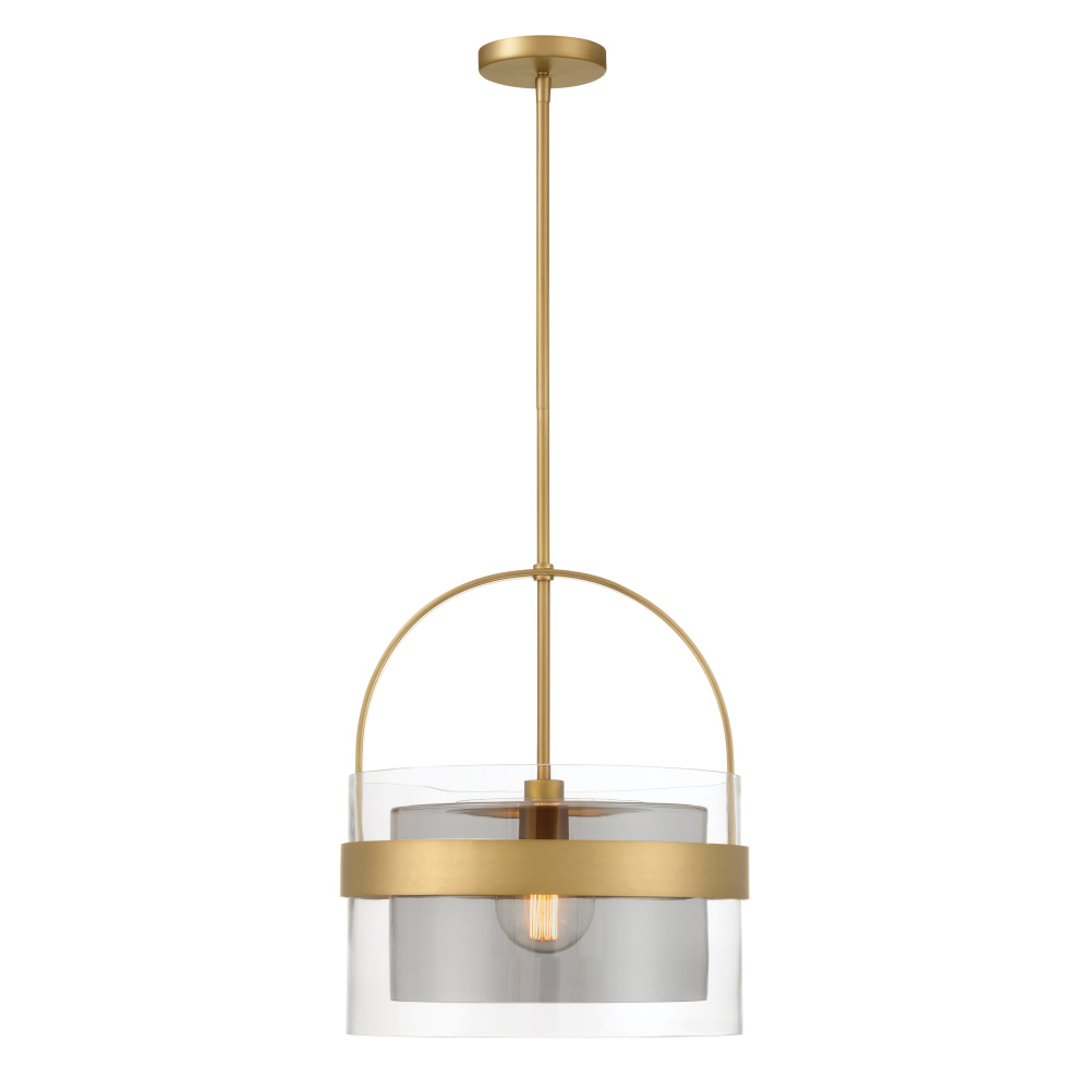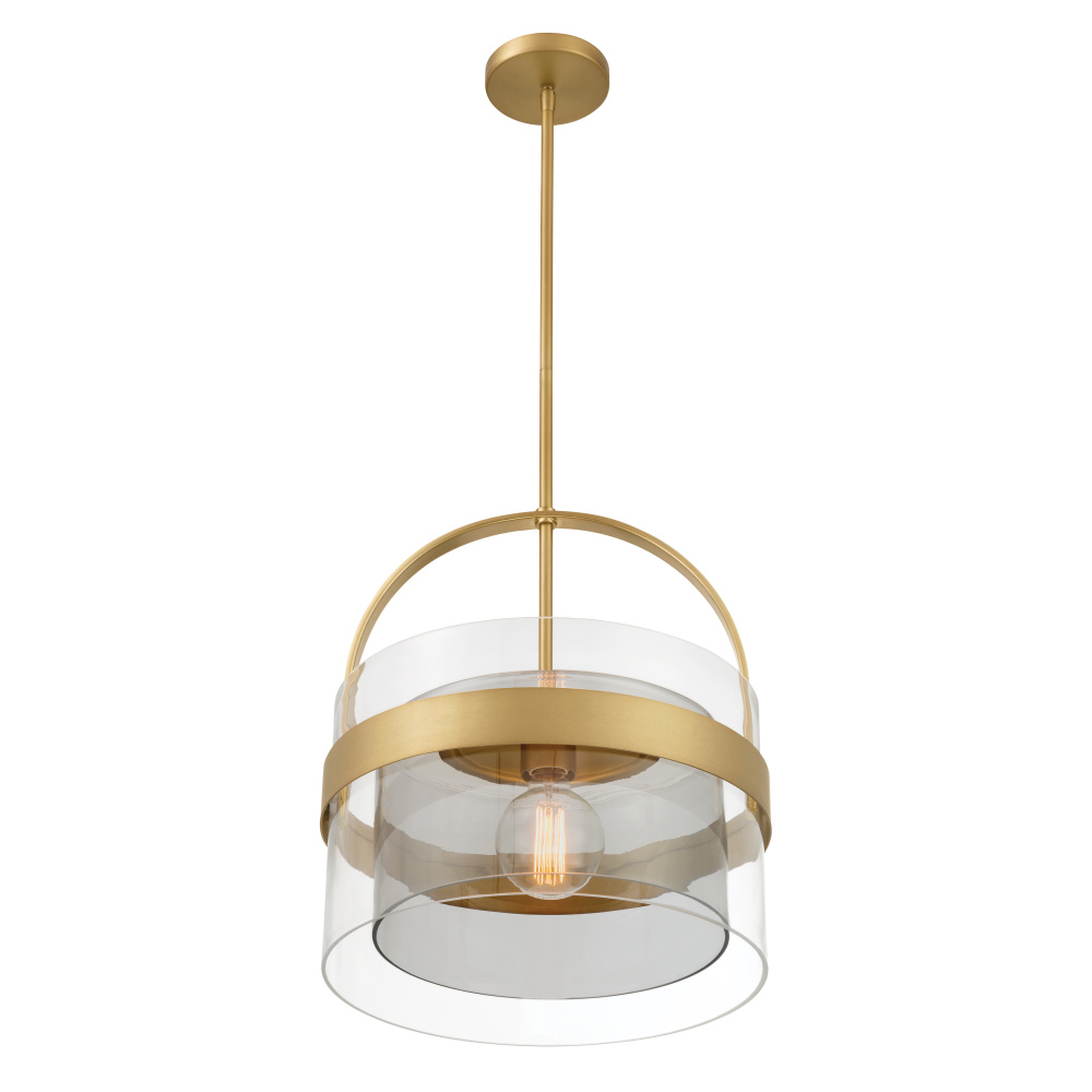 1-Light Convertible Pendant/Semi-Flush Mount - Legacy Brass with Clear and Grey Glass