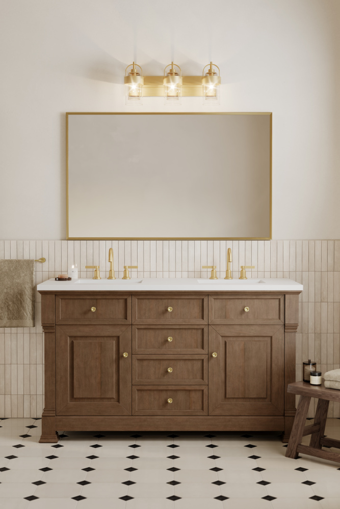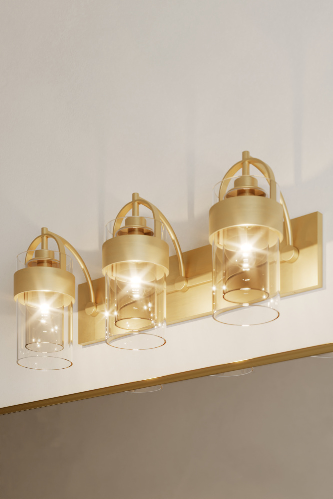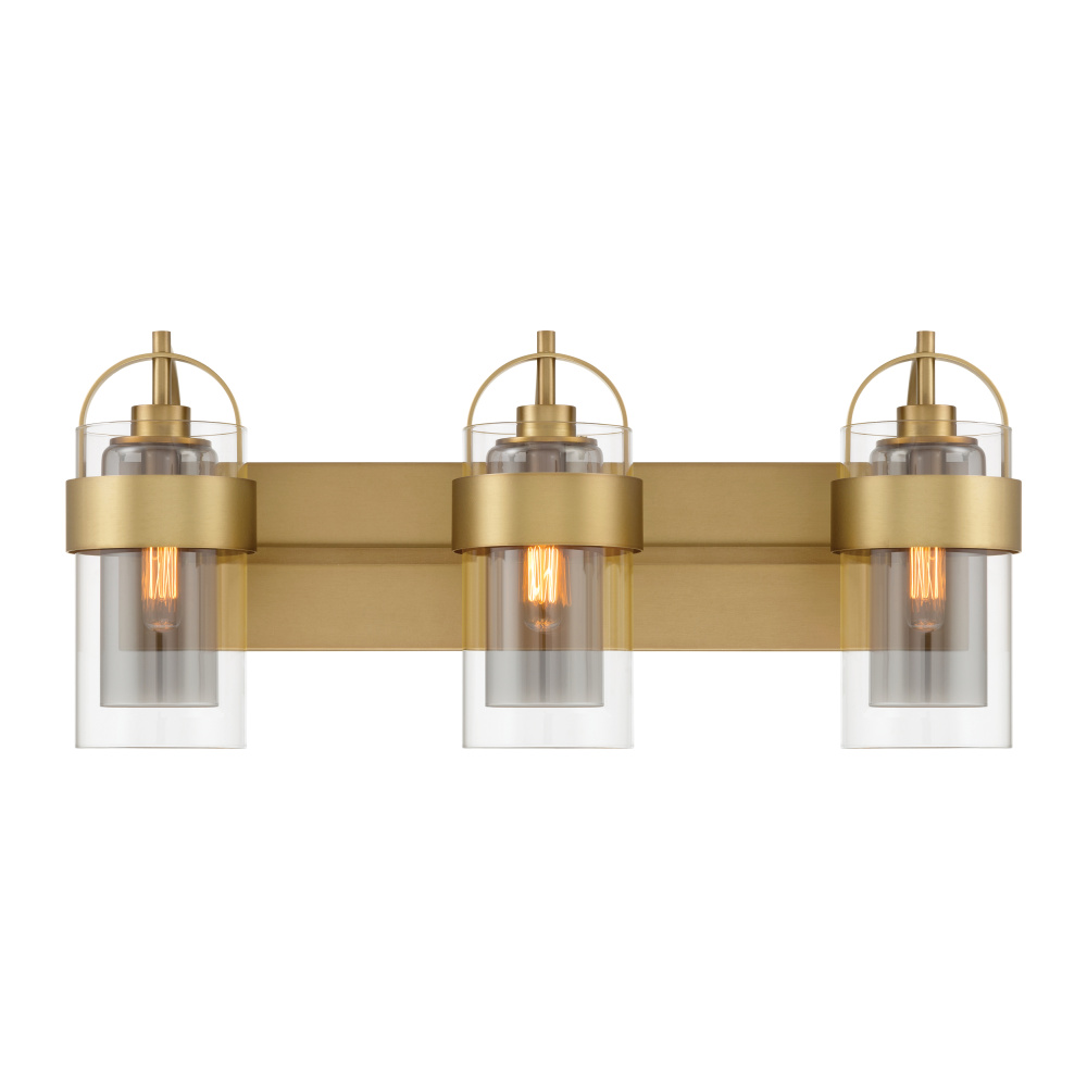 3-Light Vanity - Legacy Brass with Clear and Grey Glass