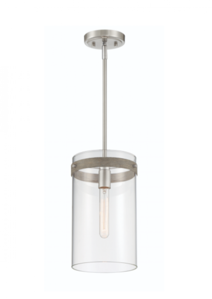 Brushed Nickel 1 Light Pendant with clear glass shade is part of the Reflecta collection