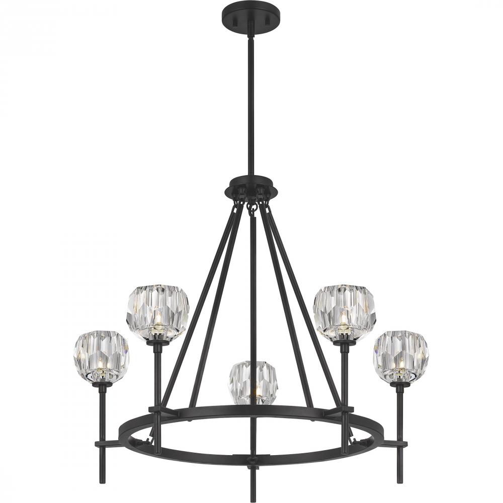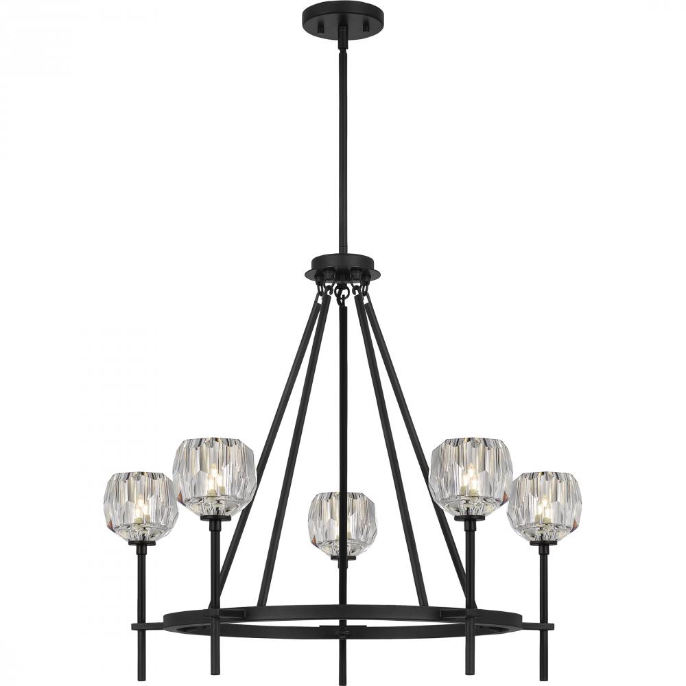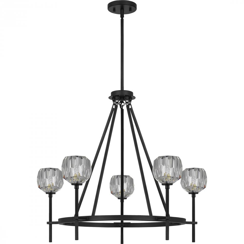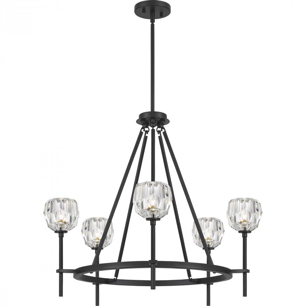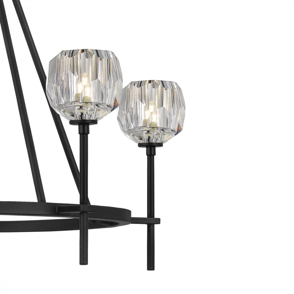 The Regalia makes a chic style statement with faceted crystal shades that amplify the light. The Understated silhouettes are ?nished in an edgy, yet sophisticated matte black to ?nish the look.
