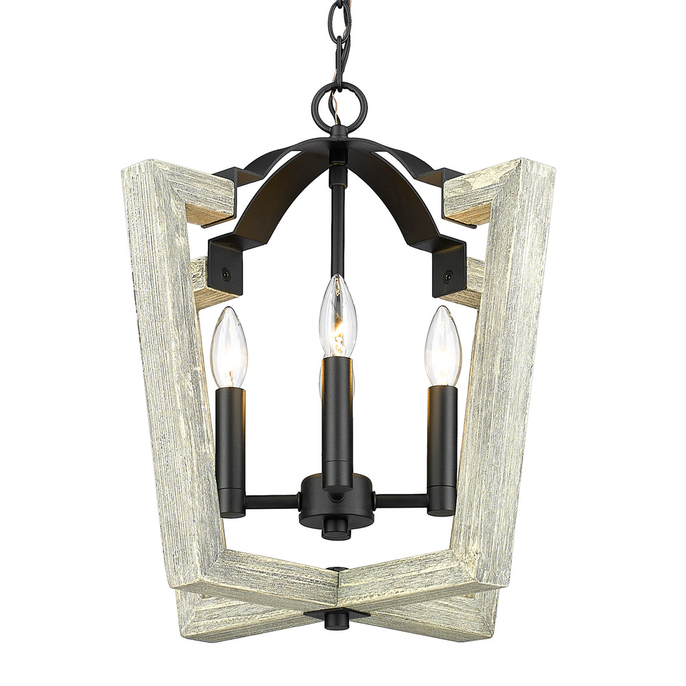 Fixture is chain hung and may be mounted on a sloped ceiling. Fixture uses genuine pine wood accents.