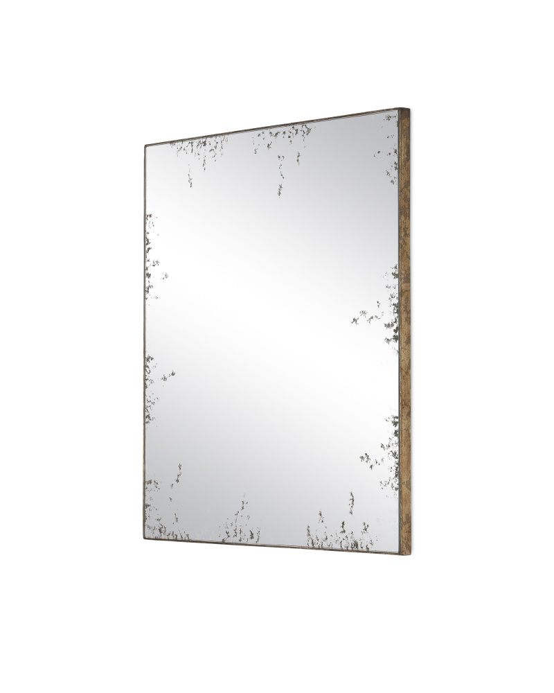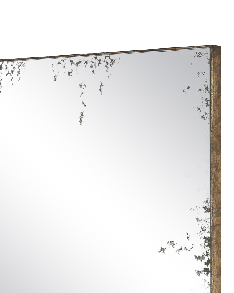 With its frame pulled back to create a simplified silhouette, the antiqued surface of the Rene Square Mirror is all the eye sees. The metal echoes the tone of the distressed edges of the mirror where they meet.