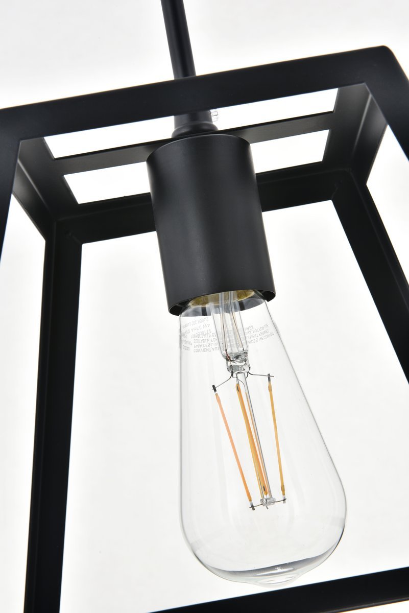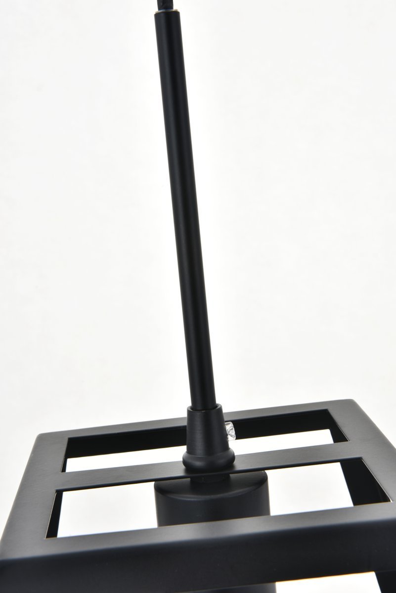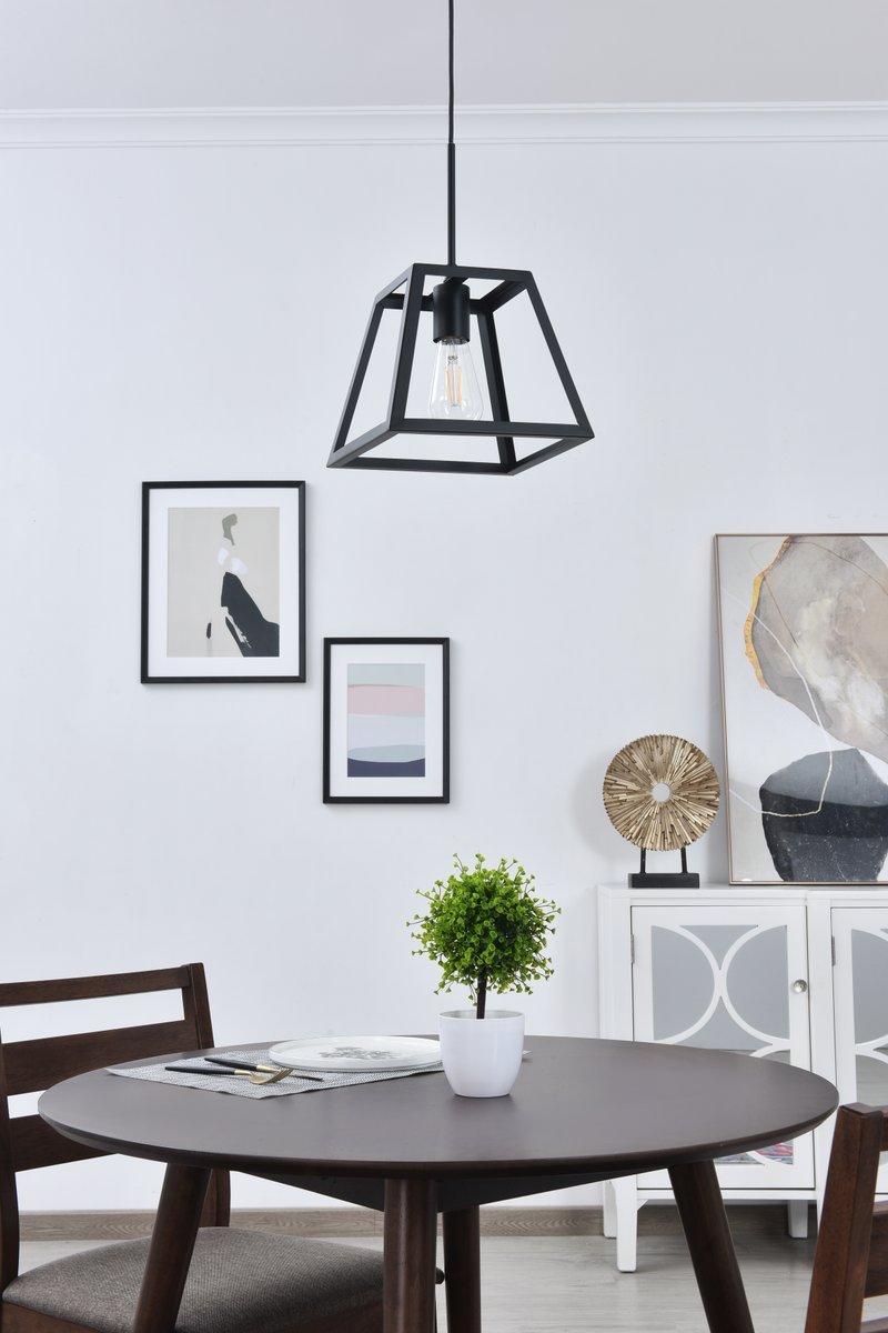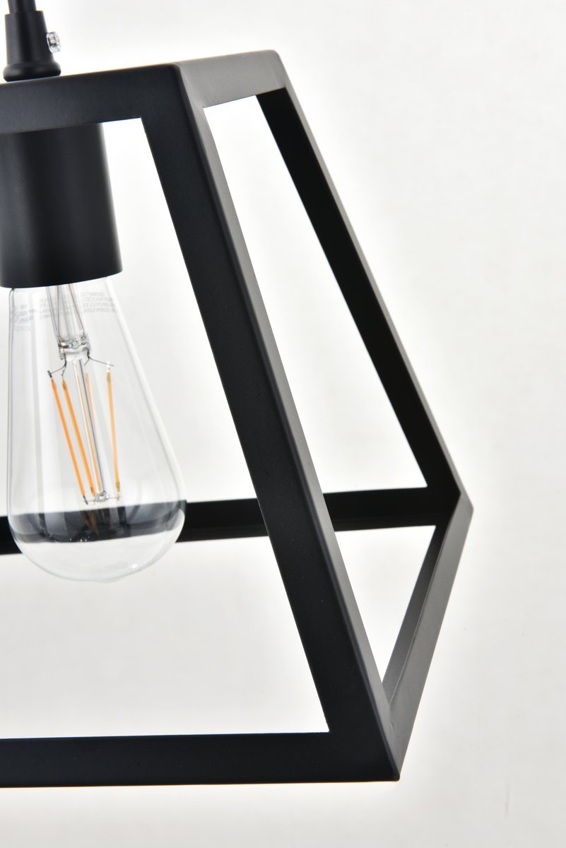 Modern black finish pendant light with an open geometric frame