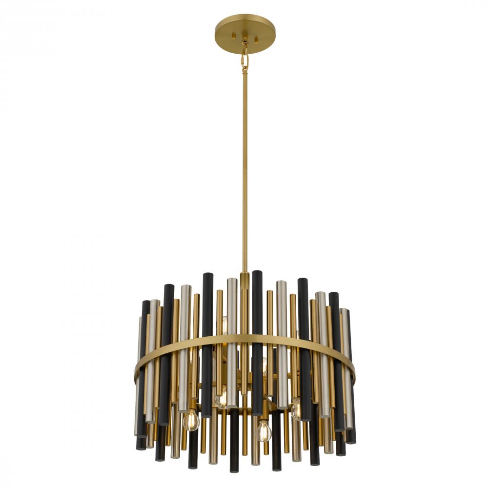 Bold yet poetic, the Richards Pendant brings drama and elegance into perfect harmony. Featuring a striking silhouette of cascading cylindrical forms in a warm brushed gold finish, this statement piece evokes the rhythm of a symphony—each vertical element