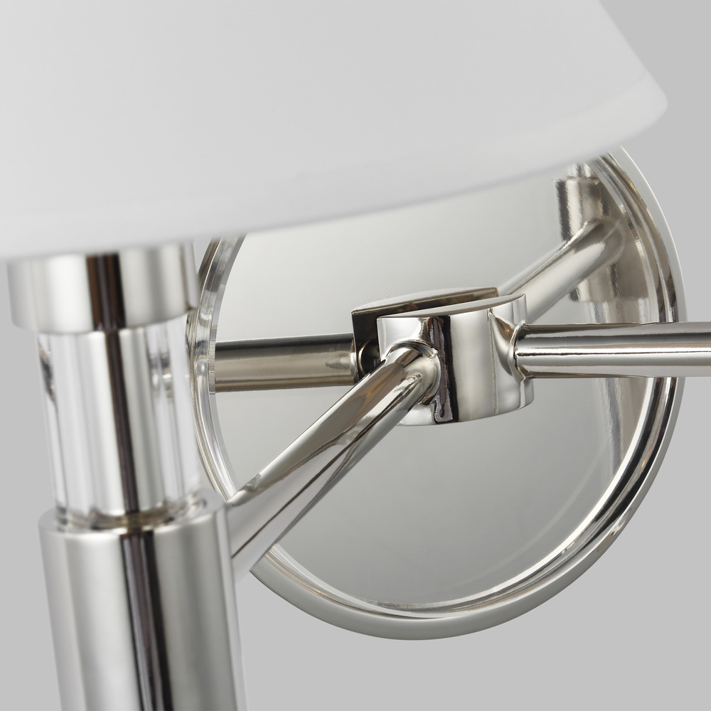 The Robert two light vanity fixture has strong clean lines of Lucite stems that elevate and support the paper empire shades in this shapely series.