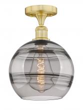Rochester - 1 Light - 10 inch - Antique Brass - Light Smoke Shade - Semi-Flush Mount