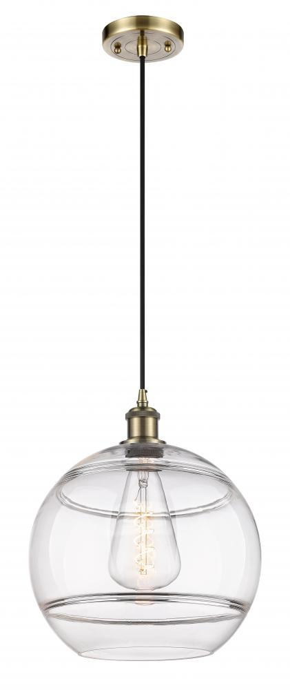 Rochester - 1 Light - 12 inch - Antique Brass - Clear Shade - Cord hung - Mini Pendant