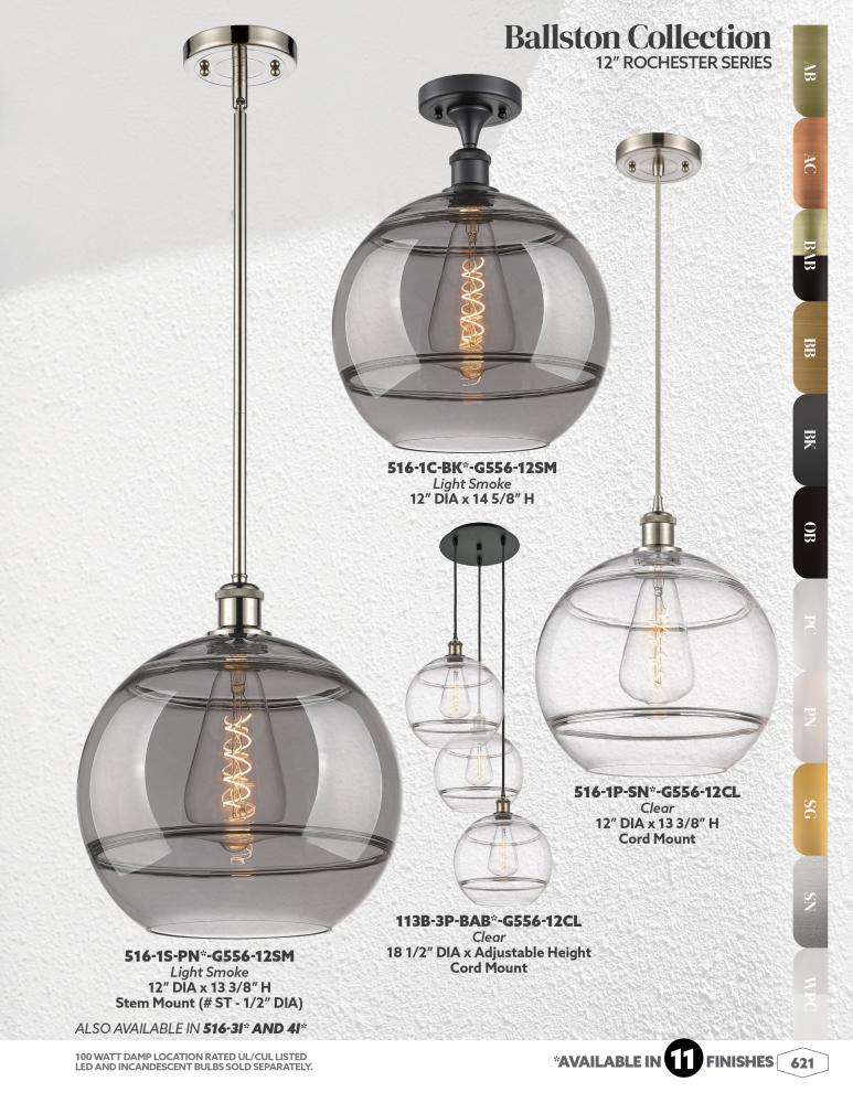 The Rochester Series is meticulously handcrafted, showcasing exquisite glass band detailing. These bands are the result of a complex and delicate glassblowing technique, making each pendant truly one-of-a-kind. While the exterior of the glass shade has a s