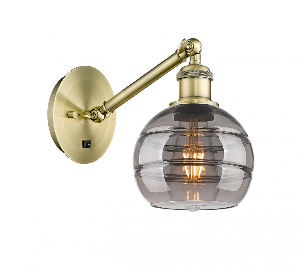Rochester - 1 Light - 6 inch - Antique Brass - Light Smoke Shade - Adjustable Sconce