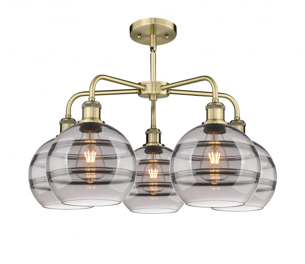 Rochester - 5 Light - 26 inch - Antique Brass - Light Smoke Shade - Chandelier