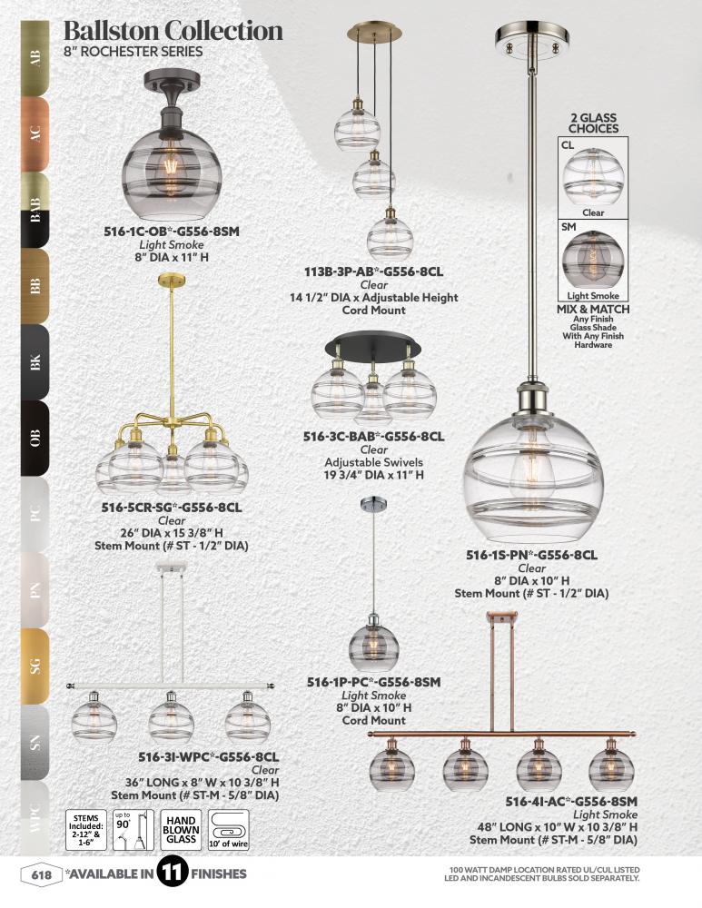 The Rochester Series is meticulously handcrafted, showcasing exquisite glass band detailing. These bands are the result of a complex and delicate glassblowing technique, making each pendant truly one-of-a-kind. While the exterior of the glass shade has a s