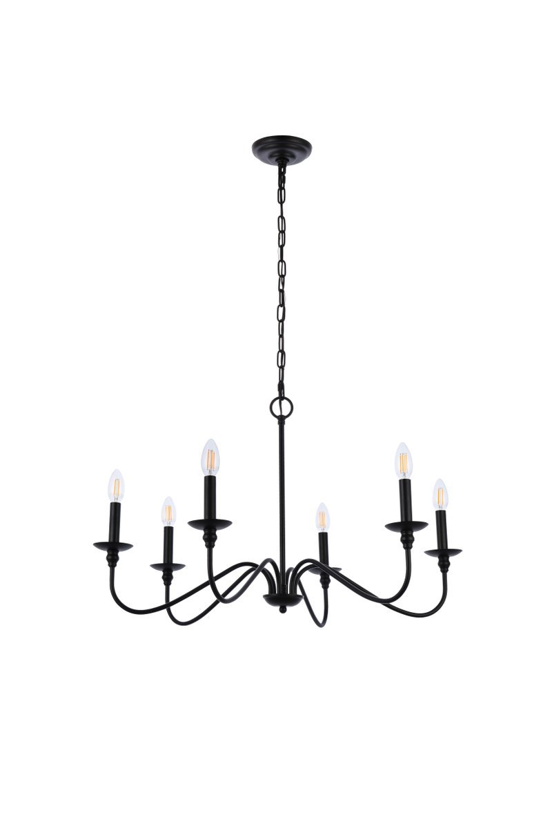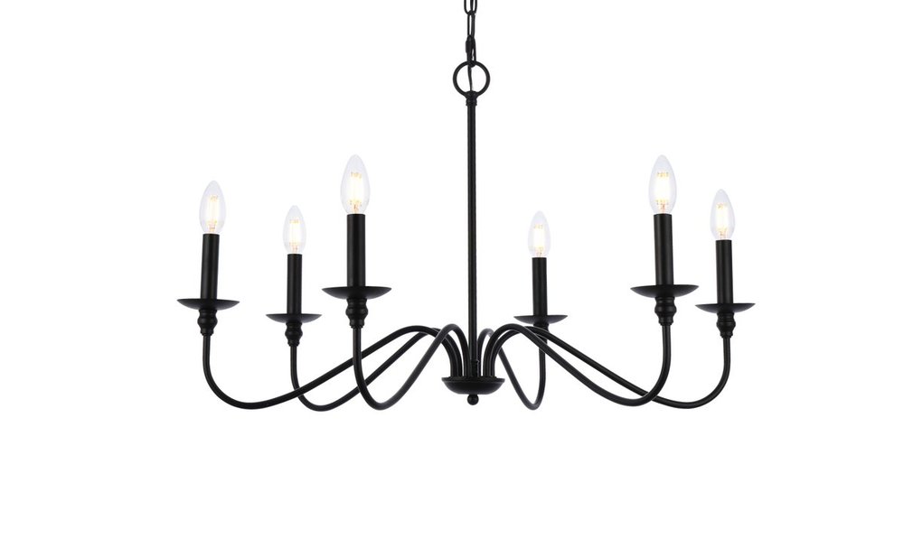 Elegant LD5006D36MB - Rohan Collection Chandelier D36 H19 Lt:6 Matte Black Finish