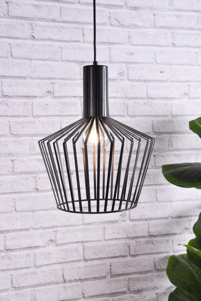 The open frame-work vase shaped shade creates a contemporary aesthetics while allowing light to pass through and forming interesting shadows