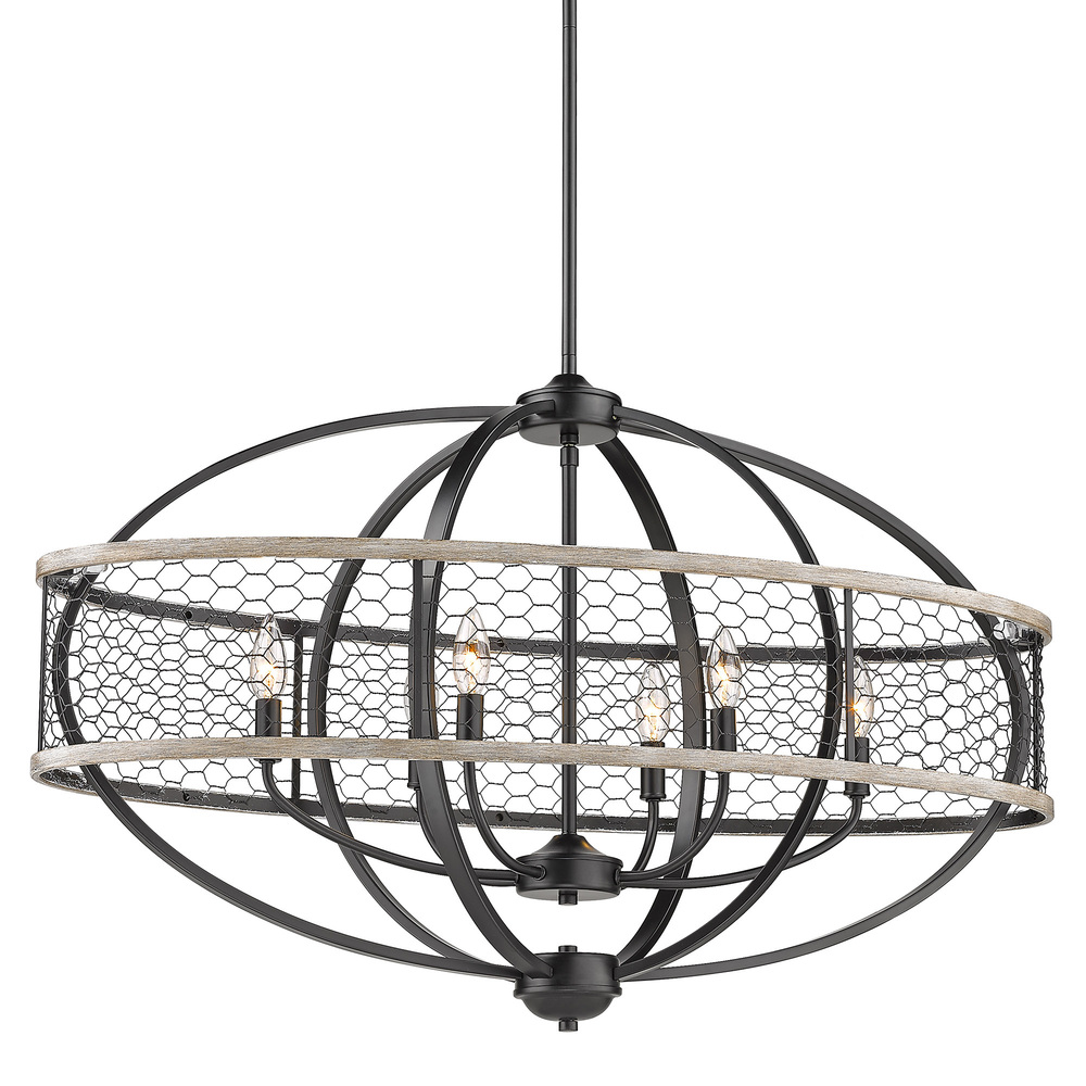 Roost Linear Pendant in Matte Black with Chicken Wire Shade