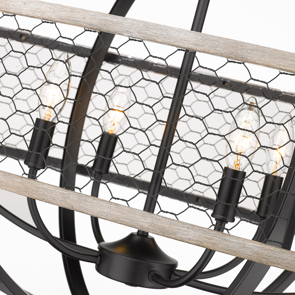 The Roost collection brings casual, rustic styling to any space. On-trend with modern country home design, the design is perfect to hang in rooms with farmhouse décor. The style works equally well with vintage-inspired decors, rooms with antique accents, and even bistro kitchens. Sturdy, sophisticated metal frames are curved to create an organic silhouette. Loosely wrapped mesh chicken wire shades allow widespread light to fill a room. This linear pendant fits perfect over a kitchen island.