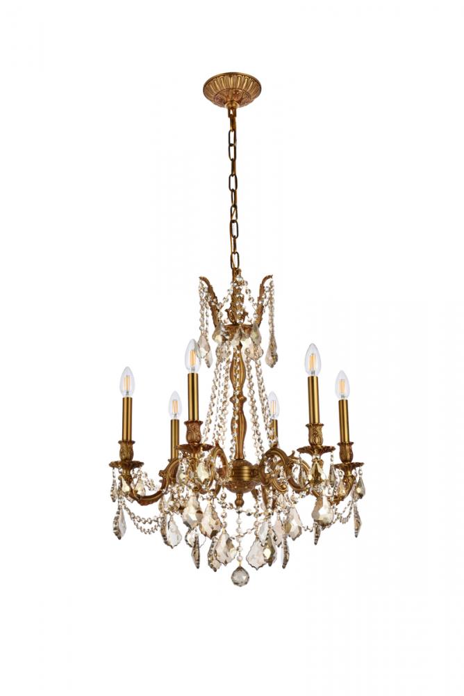 Elegant 9206D23FG-GT/RC - Rosalia 6 light French Gold Chandelier Golden Teak (Smoky) Royal Cut Crystal