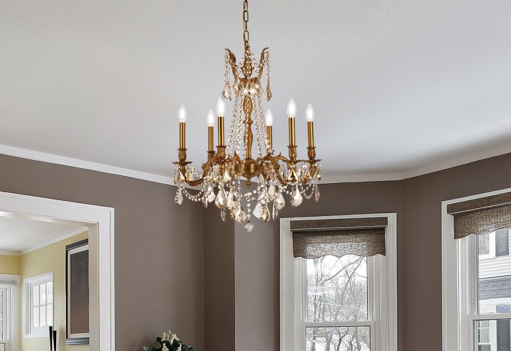 Warm, brilliant light is created by 6 light bulbs. (not included)