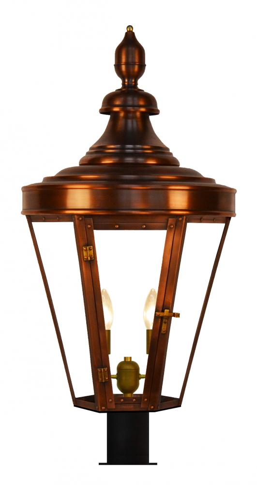 Size 61 Electric Copper Lantern, 2 candelabra base sockets, with Post Fitter, Post Fitter Adaptor