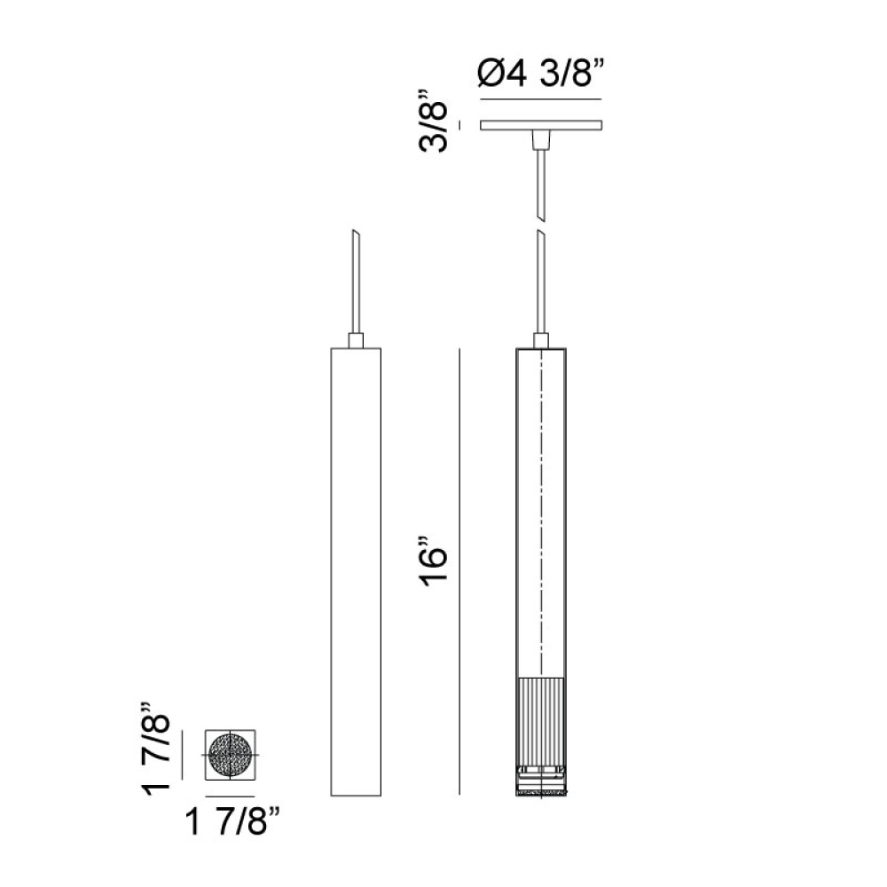 This modern drop pendant designed using a square tube has an industrial feel.When hung on its own or grouped, it will add a subtle design element. The Royce series comes in either an Aluminum or Oxidized Black finish with a black fabric cord. Both finishes are available in 2 sizes.