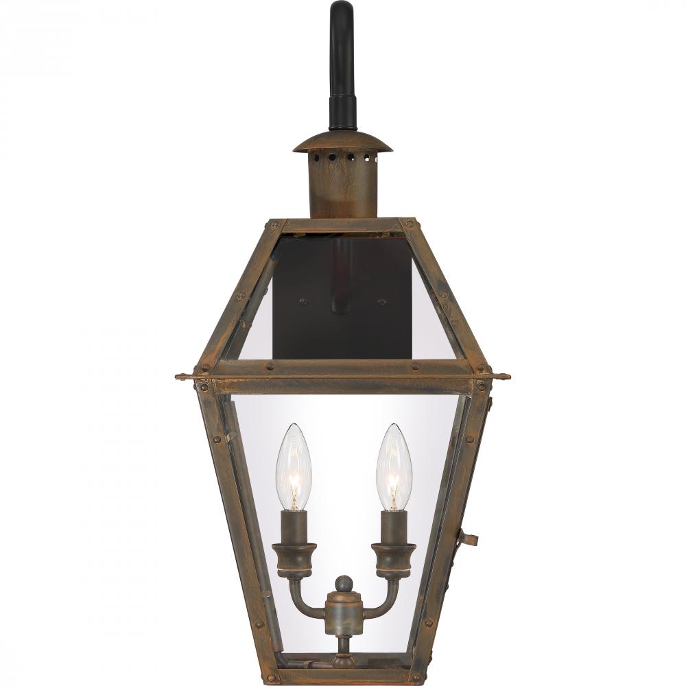 From the Charleston Copper & Brass Lantern Collection, the Rue De Royal offers the historic look of gas lighting without the hassle of a propane feed. It is all electric and features a hand-riveted solid copper or brass frame, combining the romantic charm