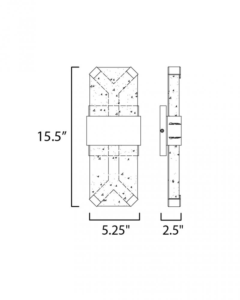 Artisanal cast glass slabs are supported by a Die Cast Aluminum bracket finished in an outdoor rated Black powder coat. Emphasizing the unique beauty of the glasses' imperfect contours, the sconces accentuate these features with concealed LED lighting.