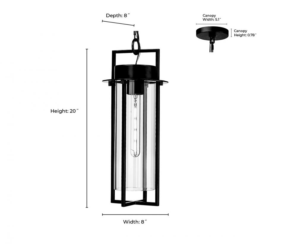 This outdoor hanging lantern is 8 in. wide