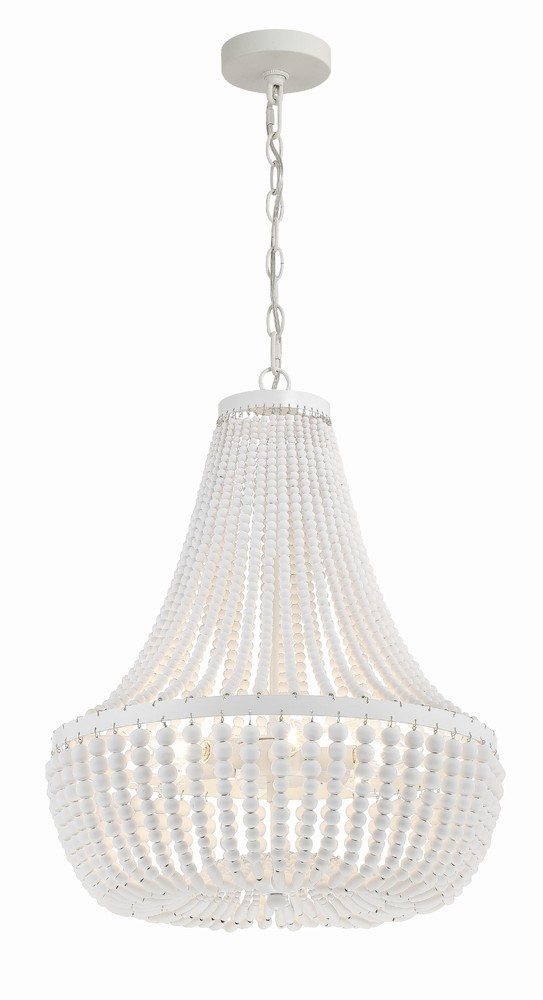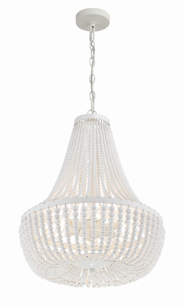 A traditional Empire shape meets modern elements in Crystorama's Rylee Collection. A circular-shaped hand-painted frame gives this fixture a vintage, distressed look, while the beads lend to a bohemian style flare. The Rylee creates a rich visual impact on any space in a perfect combination of texture and materials.