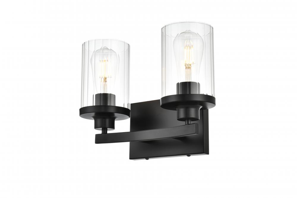 Elegant LD7316W12BLK - Saanvi 2 light Black and Clear Bath Sconce