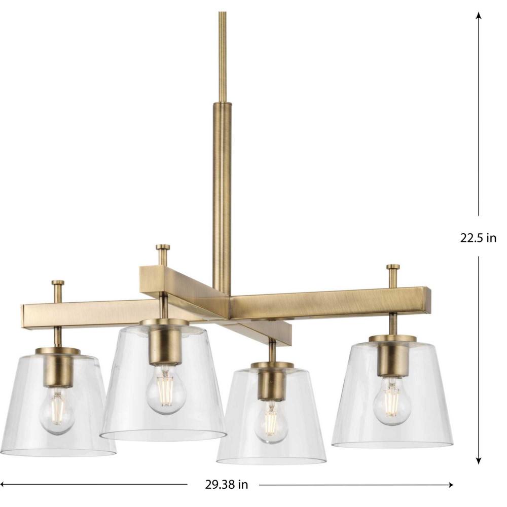 Progress P400299-163 - Saffert Collection Four-Light New Traditional Vintage Brass Clear Glass Chandelier Light