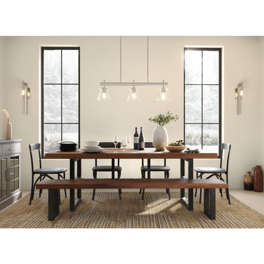 Saffert Collection Three-Light New Traditional Brushed Nickel Clear Glass Linear Island Chandelier L