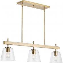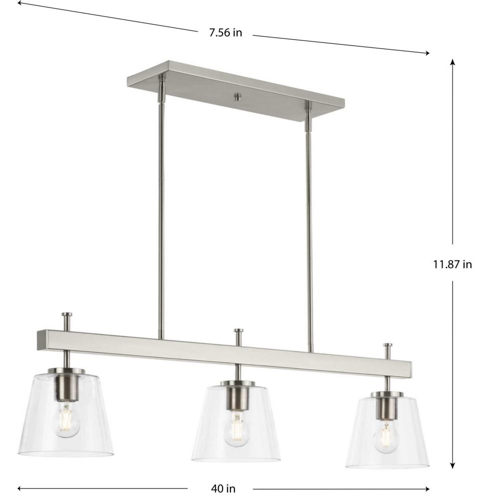 Progress P400298-009 - Saffert Collection Three-Light New Traditional Brushed Nickel Clear Glass Linear Island Chandelier L