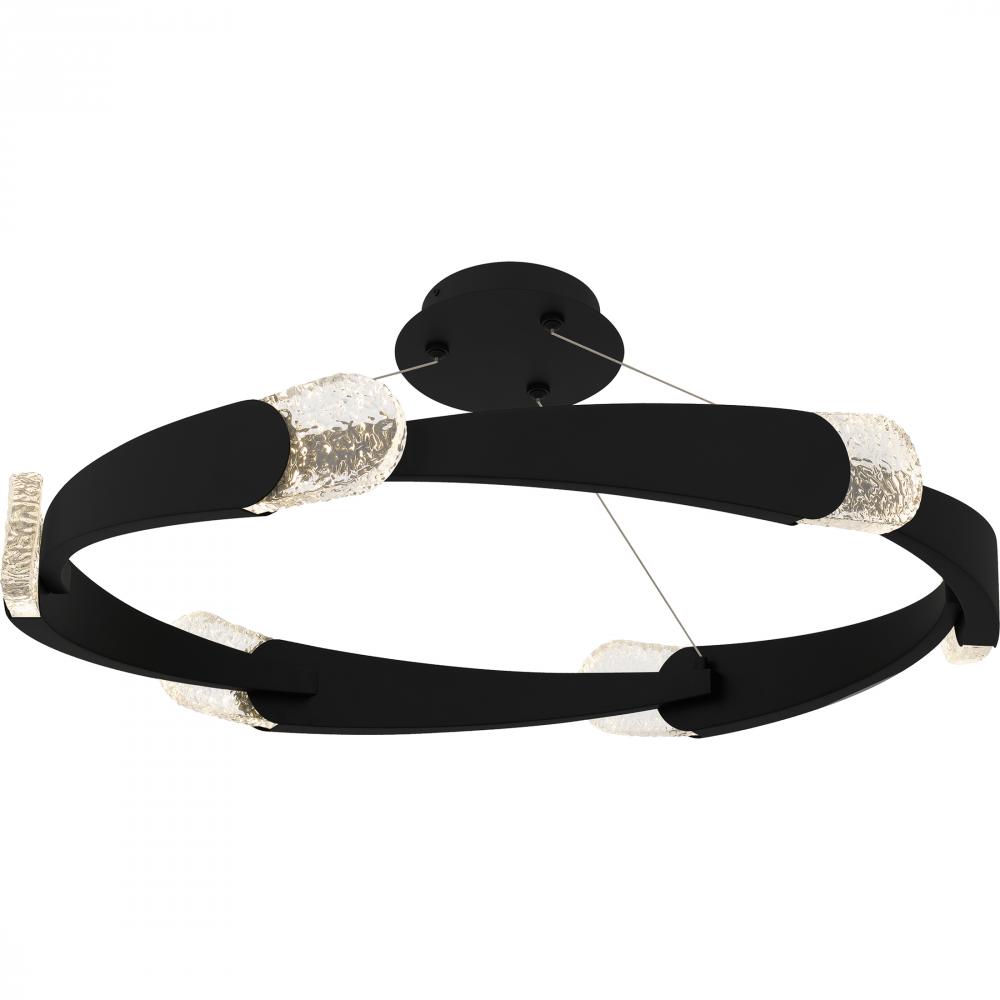 Part of the popular Platinum by Quoizel collection, Saffron features a sleek circular design that adds a touch of sophistication to any space. Finished in matte black, the fixtures are complemented by clear textured glass that allows the integrated LED to