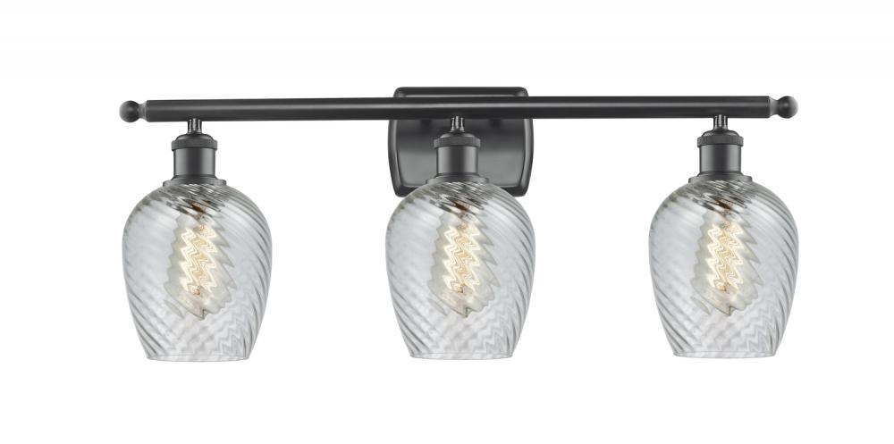 Salina - 3 Light - 26 inch - Matte Black - Clear Spiral Fluted Shade - Bath Vanity Light