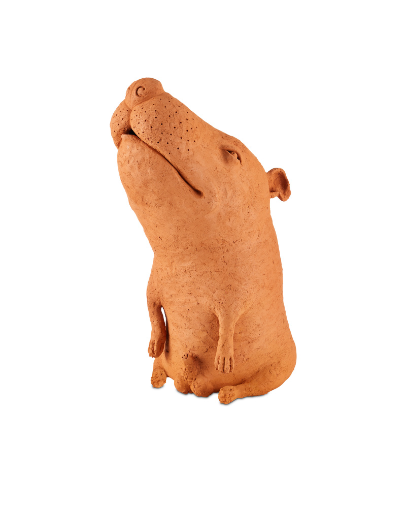 Whimsical in terracotta, Sam the Mutt is a sculpture by the emerging Thai artist Nhut Nhathawut. with an expression that is so lifelike that it feels he may bark at any moment, there are a number of artisanal aspects to the canine sculpture. This includes the obvious strokes of the artist's tools that play along the surface of the dog's body. Brownlee Currey had some fun with this mixed-breed, describing his reality as, "There may be some bulldog in there, but Sam’s mental and physical acuity is more akin to a potato than a sporting breed."