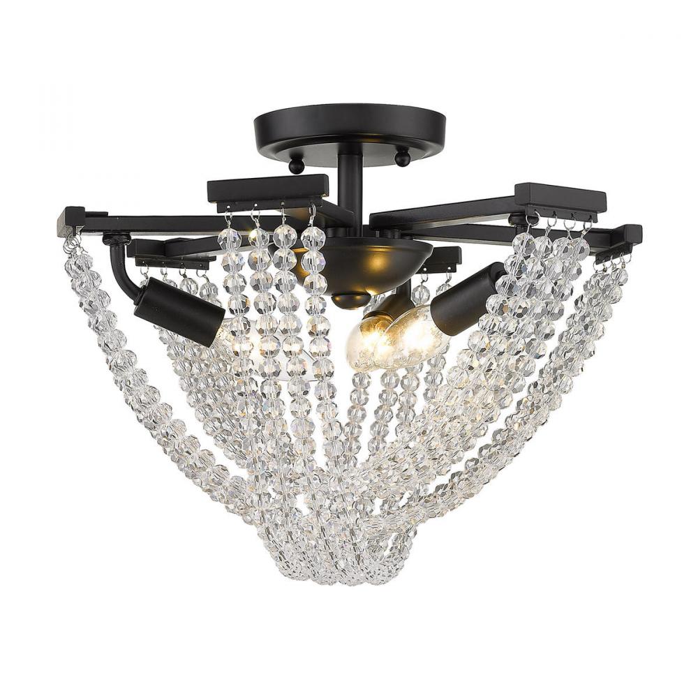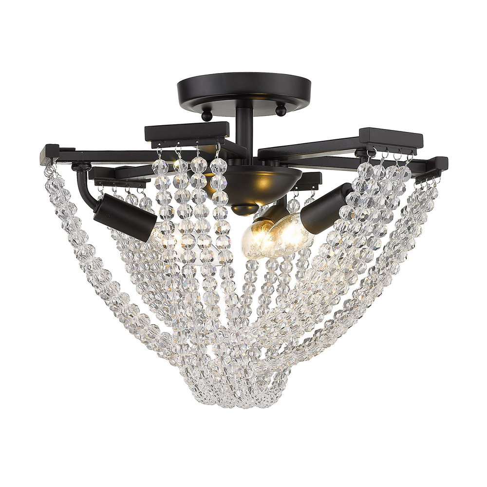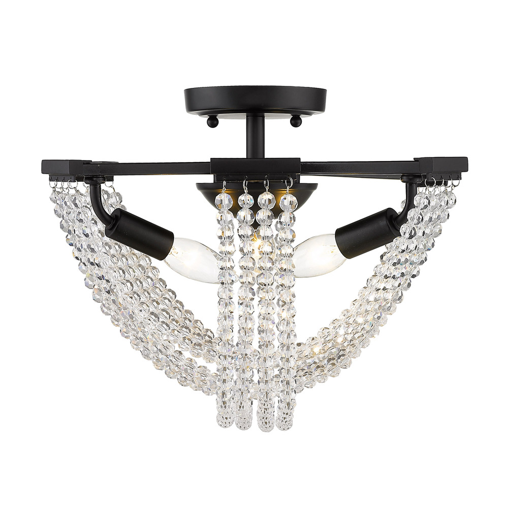 Golden 1896-3SF BLK-CRY - Samba 3 Light Semi-Flush