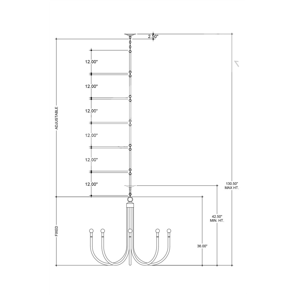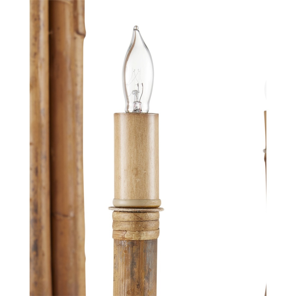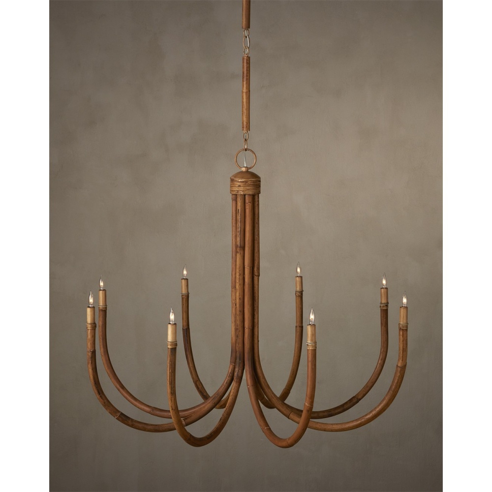 The Samsara Chandelier is an overscale fixture made from thick reeds of rattan that encase the wire running through the fixture. Bending rattan this thick takes great skill and effort. in order to keep the aesthetics of the chandelier clean, the candle sleeves and hardware are in a saddle tan finish, and the thinner reeds that wrap these in place are tonally in sync. The Samsara will be a dynamic element in a coastal setting and is a strong entrant for a natural material story. Adjustable from 42.5" to 130.5" with use of included chain/rod kit/cable. If your space calls for a longer drop, additional chain/rods/cable is available for purchase.