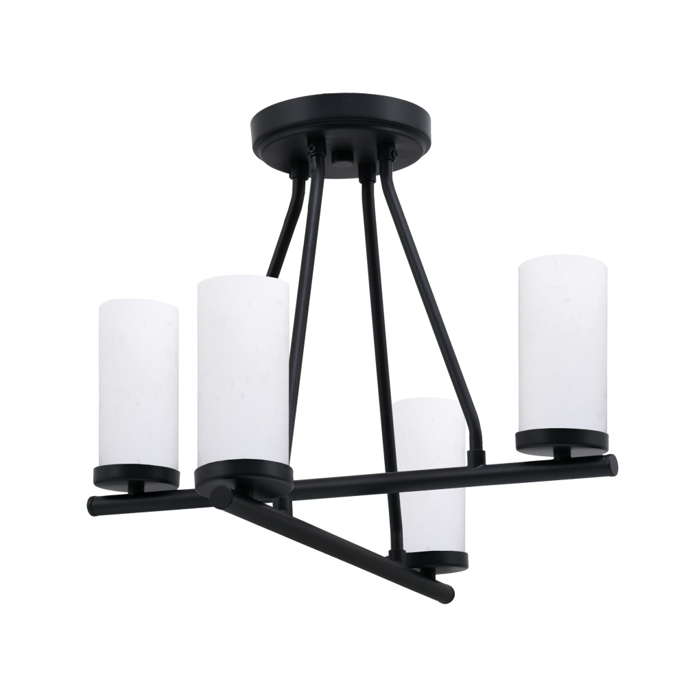 Toltec Lighting 2807-MB-801B Trinity 4 Light Semi-Flush Shown In Matte Black Finish With 2.5 White Muslin Glass