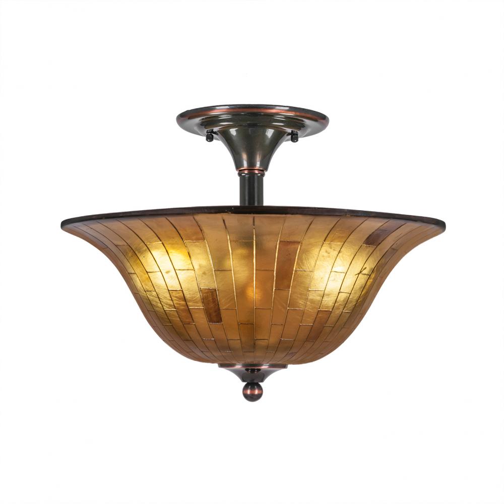 Toltec Lighting 121-BC-708 Semi-Flush, 2-Bulbs, Shown In Black Copper Finish With 16 Penshell Resin Shade
